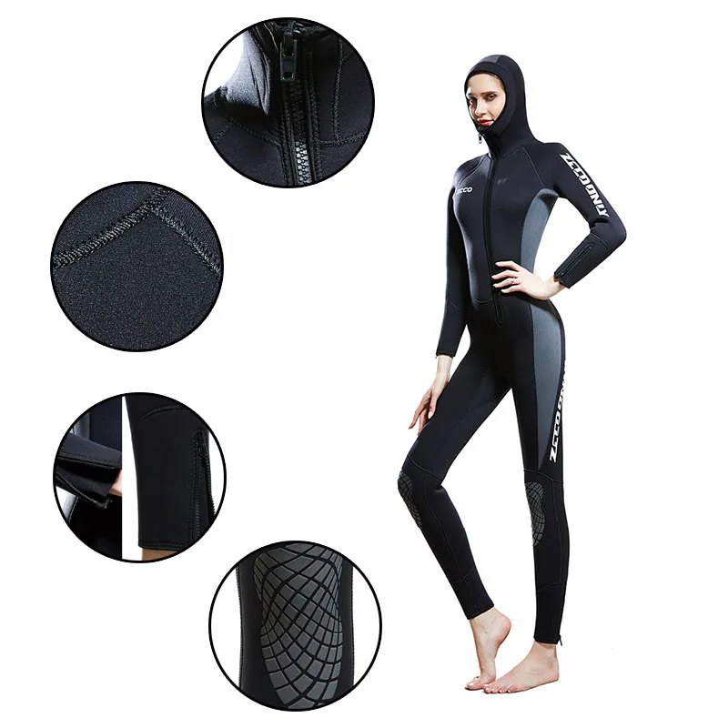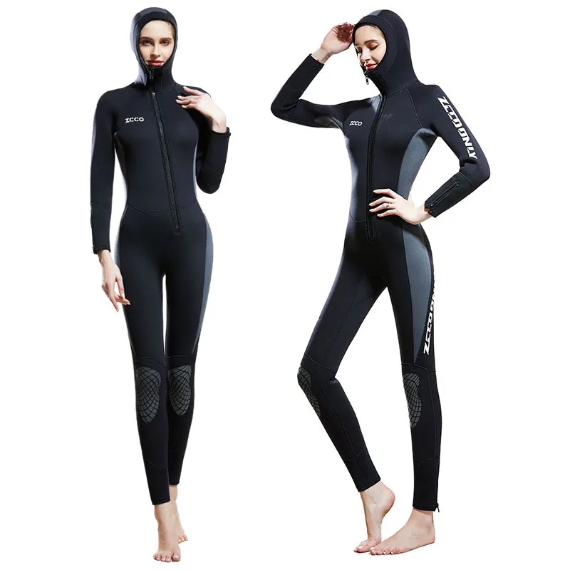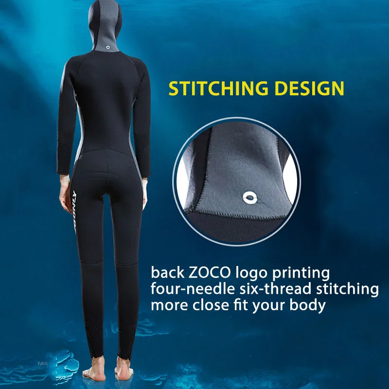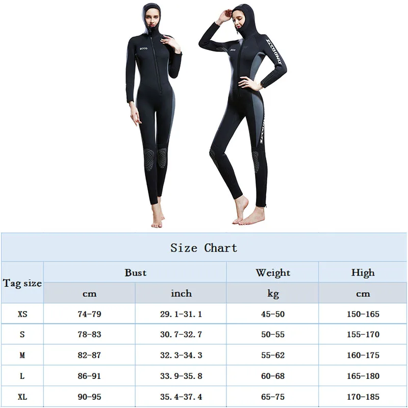 Wetsuit Women 5mm Neoprene diving suit one-Piece Hooded Wetsuits Front Zipper lady Surfing Suit